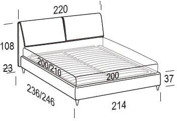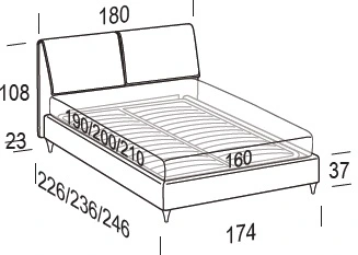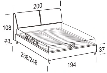 un Letto Imbottito che sposa la classicità, nella spinta avvolgente suggerita dall'imbottitura, ma che si apre nel contempo all'innovativa interpretazione del design strutturale, essenziale e intraprendente. Caratteristiche aggiuntive : Possibilità di configurare giroletto e testiera con rivestimenti diversi. Nel caso i rivestimenti siano di diversa categoria si applicherà il prezzo della categoria più alta.