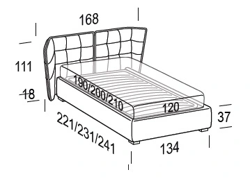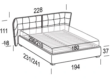 Un letto può rompere la linearità della tradizione per seguire le più inesplorate traiettorie del design: Modena abbandona la retta via e sceglie l’irriverente curvatura laterale della testiera, elegantemente marcata dalla cadenzata trapuntatura e dallo spessore significativo del bordo in rilievo.