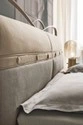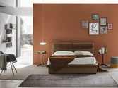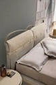 Letto matrimoniale imbottito e sfoderabile realizzato con la combinazione di morbido tessuto e microfibra effetto velluto tono su tono. Testiera decorata con bottoni e cimiero in metallo in tinta con i tessuti del letto. Disponibile anche rivestito in soft-touch bianco non sfoderabile. Consente anche una maggiore accessibilità alla parte sottostante il letto, per una comoda pulizia.