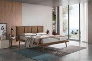 Letto king size imbottito e sfoderabile realizzato con la combinazione di morbido tessuto e microfibra effetto velluto tono su tono.