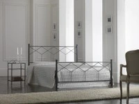 Letto in ferro matrimoniale, con tubo semipieno e particolari forgiati in ferro pieno.