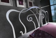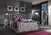 Un letto giovane e vitale dalle linee sinuose che si rincorrono in un armonia di forme create dalla lavorazione del ferro pieno piatto lavorato in taglio laser e rifinito a mano. Struttura ferro tubo e pieno tagliato laser.