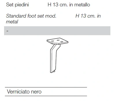 Piedini di serie H 13 cm. in metallo verniciato nero.
